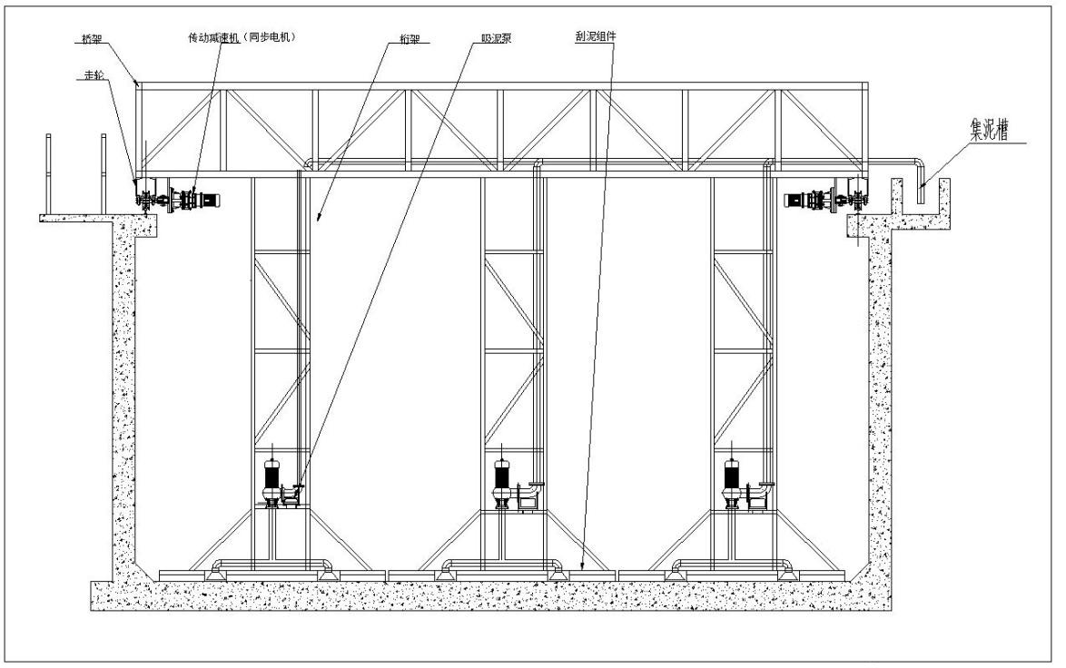 行車(chē)式吸泥機(jī)又稱(chēng)橋式吸泥機(jī),是給水工程中平流式沉淀池和污水處理工程中二次平流式沉淀池等專(zhuān)用排泥設(shè)備。該機(jī)可以克服活性污泥比重小含水率高二難以刮集的困難,目前我公司生產(chǎn)的桁架式吸泥機(jī)分為斜板(管)虹吸式吸泥機(jī)、不帶斜板(管)吸泥機(jī)和泵吸式吸泥機(jī)等三種。